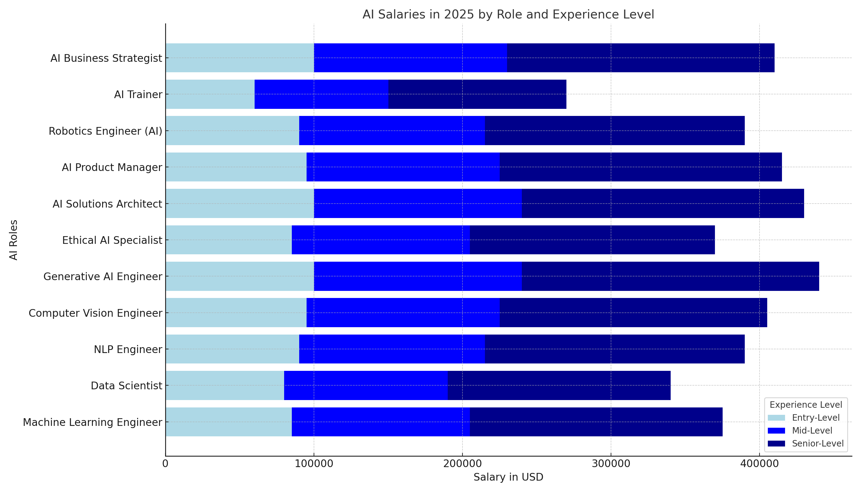 | AI Business Strategist | $100,000 - $120,000 | $130,000 - $160,000 | $180,000 - $230,000 |